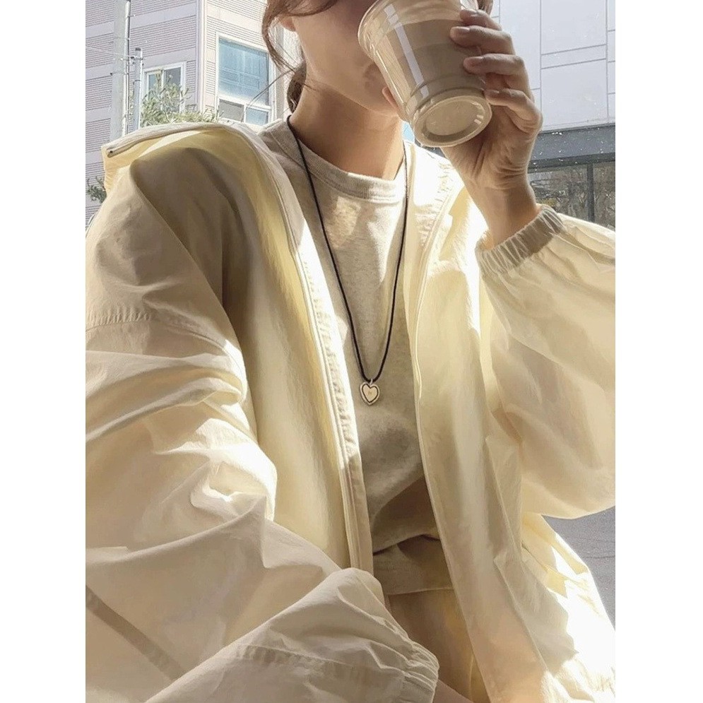 5.20 2024 Summer New South Korea Designer Casual Lightweight Camping Style Drawstring Hooded Sun Protection Jacket