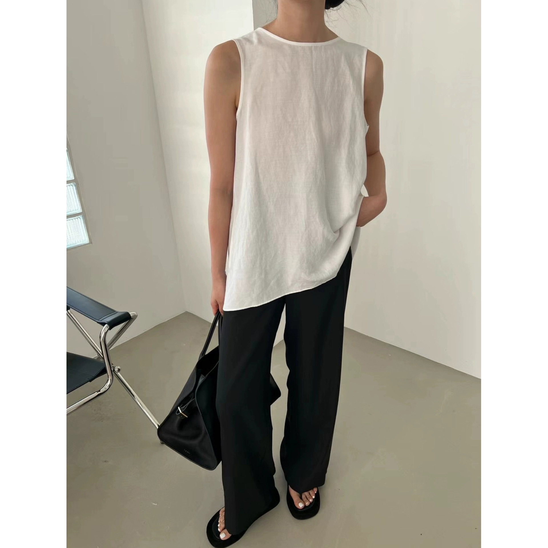 5.22 2024 صيف جديد كوريا الجنوبية Dongdaemun Yinglan نفس عارية الذراعين ايوسل الكتان بلا أكمام