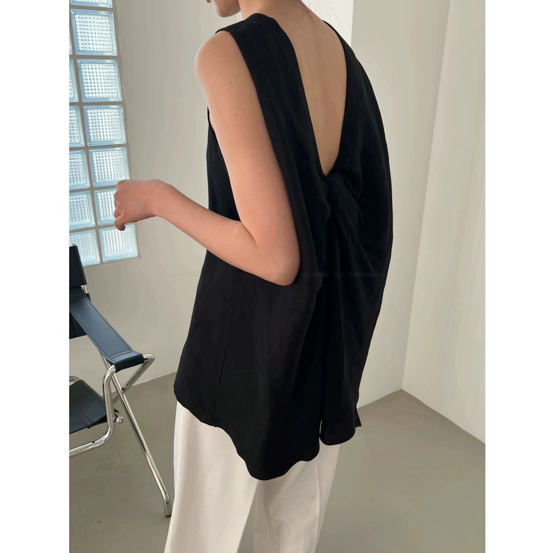5.22 2024 Summer New South Korea Dongdaemun Yinglan Same Backless Tencel Linen Sleeveless Top