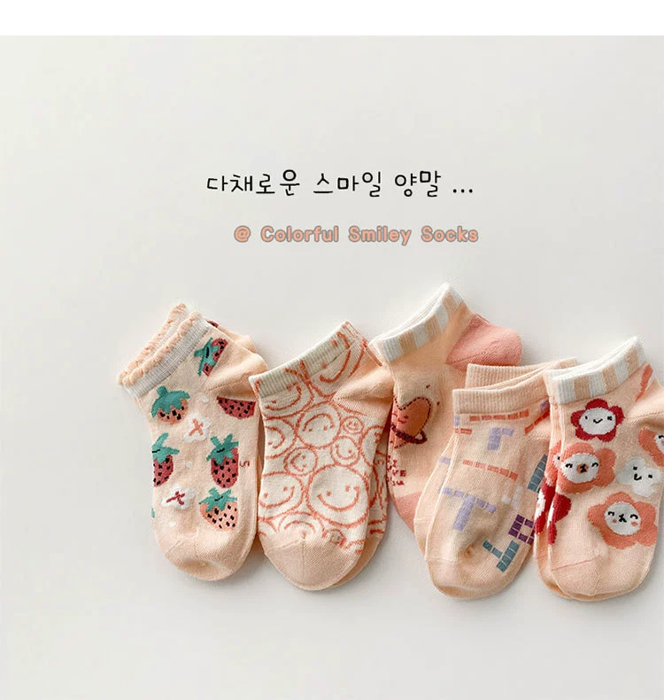 5 pairs of trendy socks, new spring and summer retro style children's socks