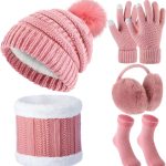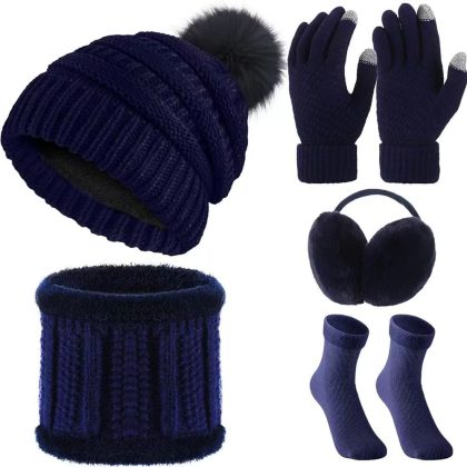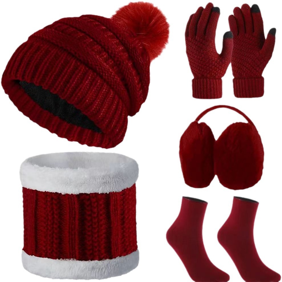 5 Piece Set Women's Winter Ski Jacket, Knitted Hat Scarf Gloves Earmuffs Stockings