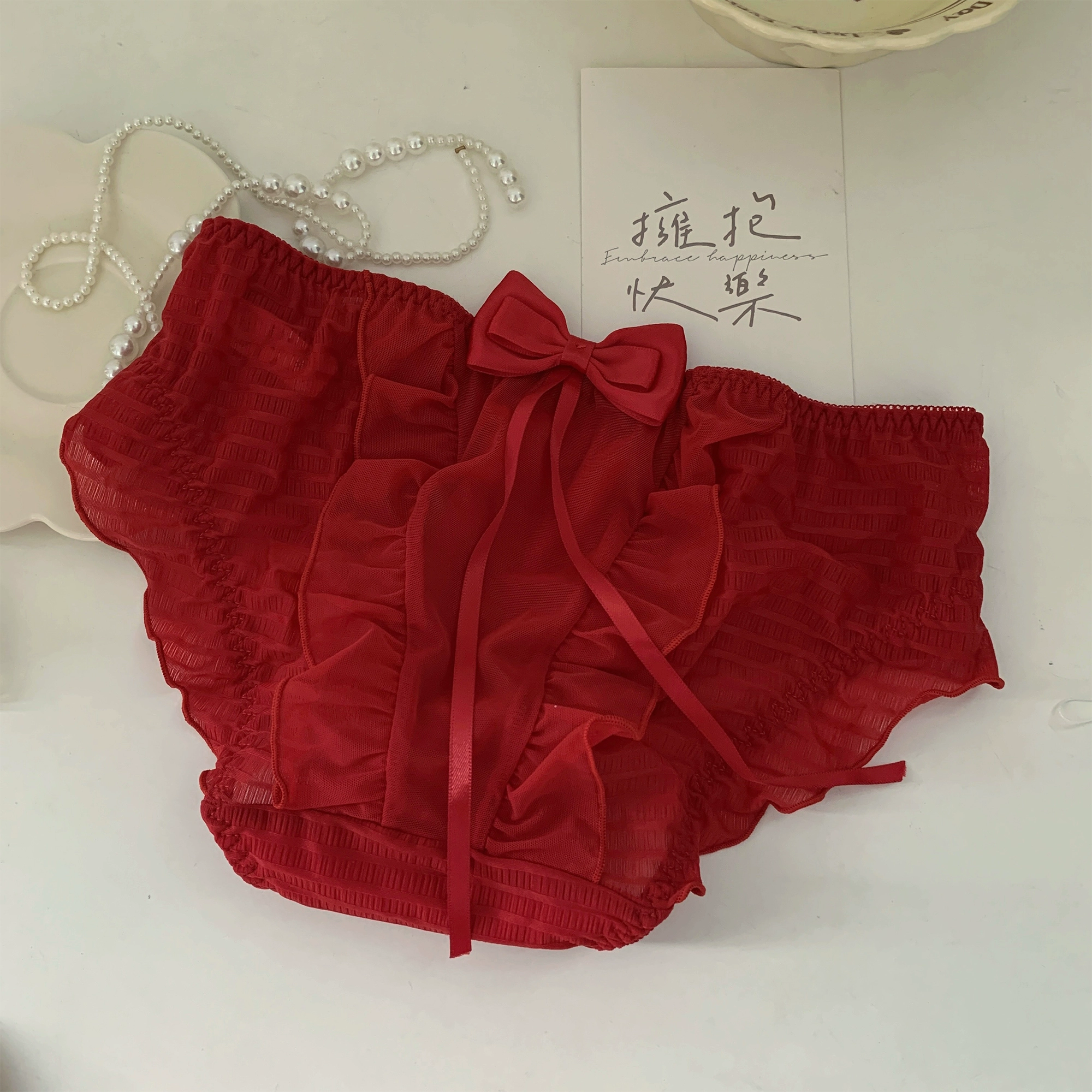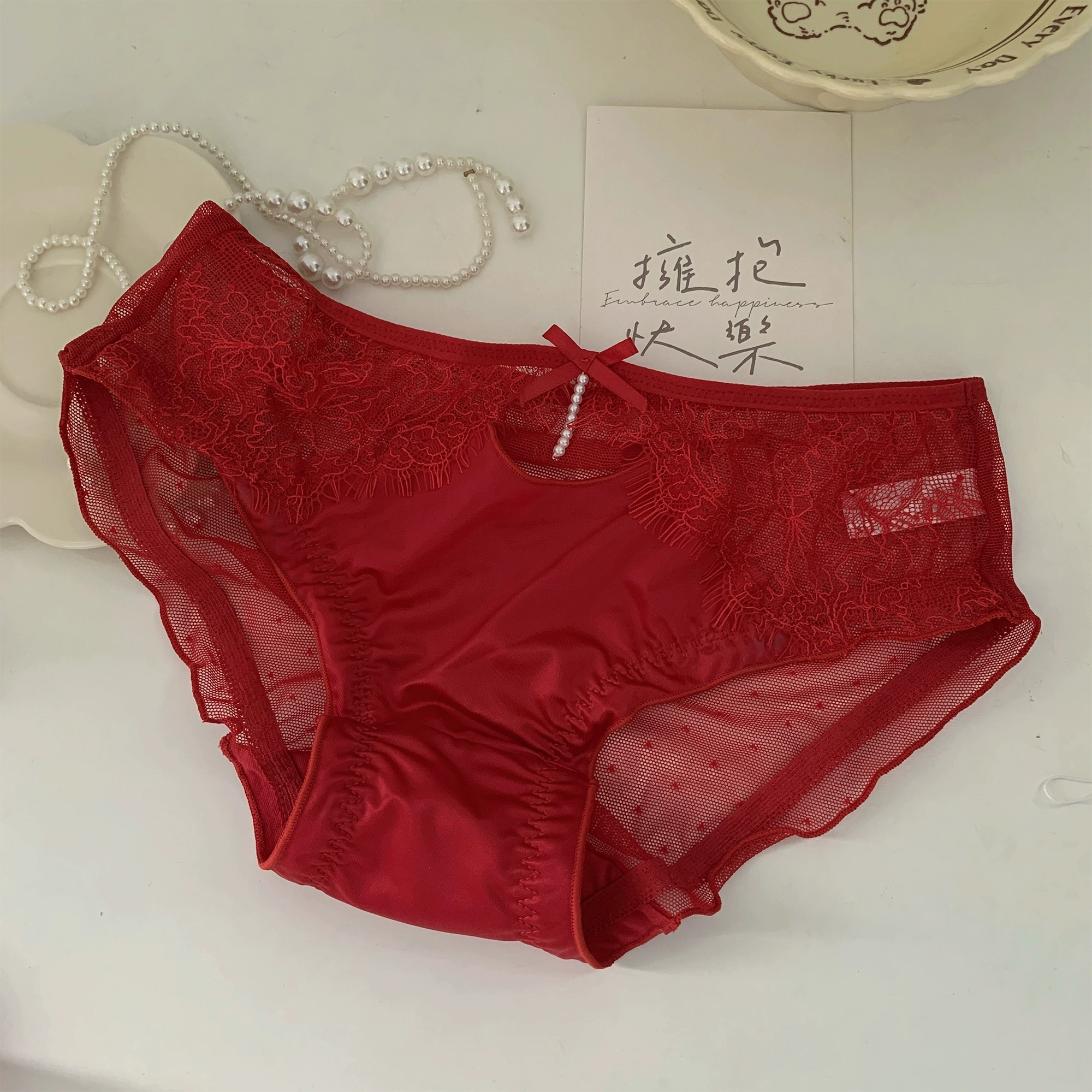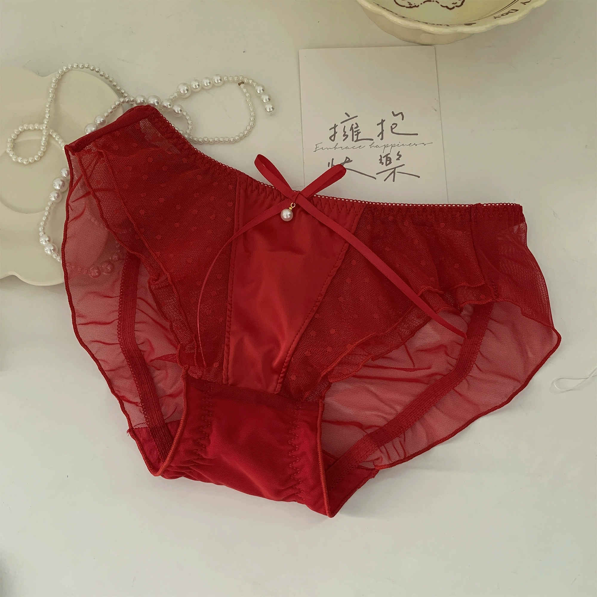 | nameOriginal | 5 pieces of bright red festive New Year and good luck underwear at 12% off |