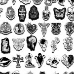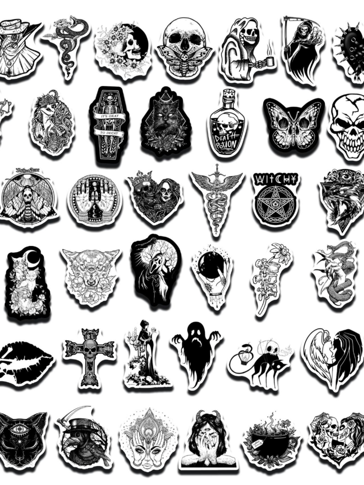 50 ملصقات بسيطة على الجدران باللونين الأبيض والأسود على شكل يد قوطية على شكل لوح تزلج وكوب ماء وحقيبة تروللي وخوذة كمبيوتر وملصق مضاد للماء