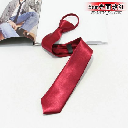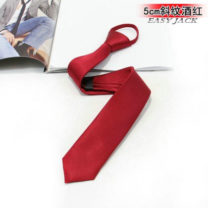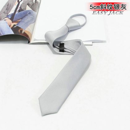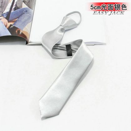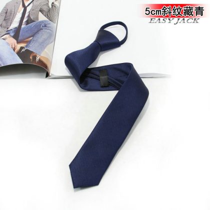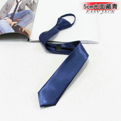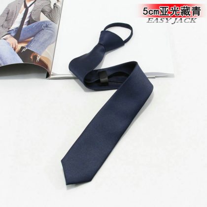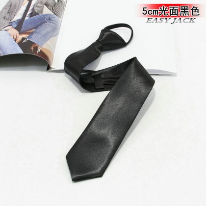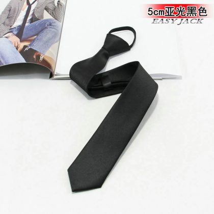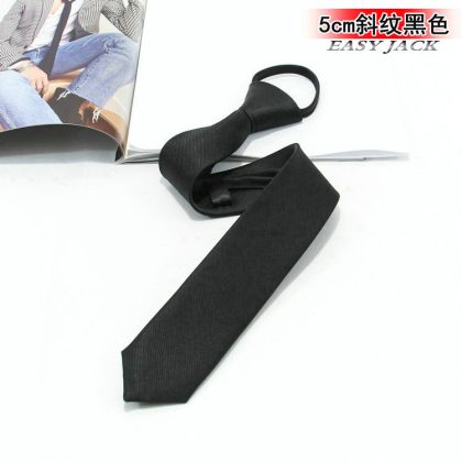 5cm Fashionable Casual Korean-style Narrow Edition Easy-to-pull Lazy Zipper Tie Men's Dress Business Black Solid Color Student Women