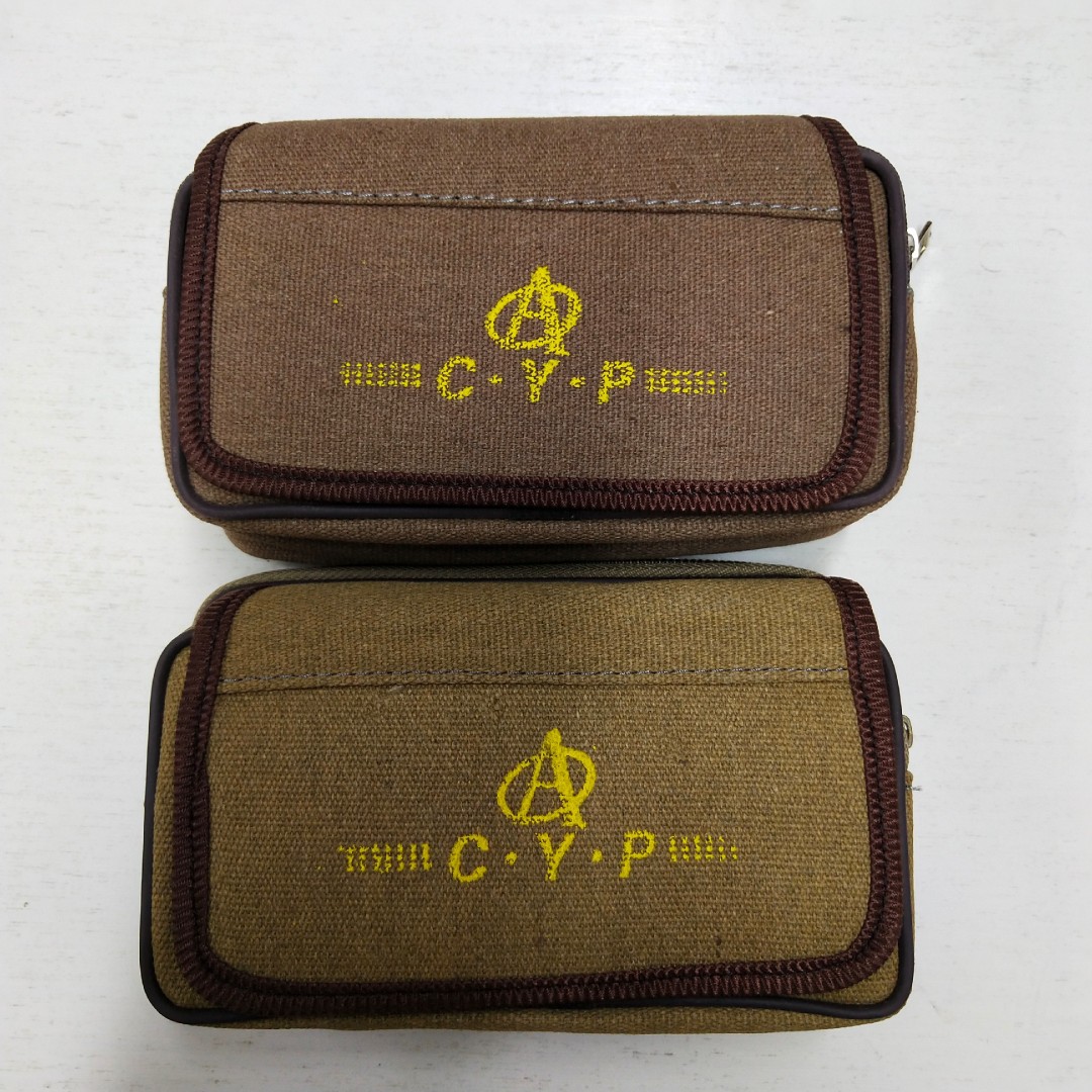 6 inch large men's double-layer horizontal mobile phone bag wear-resistant washed canvas flip wear belt waist bag sports chest bag