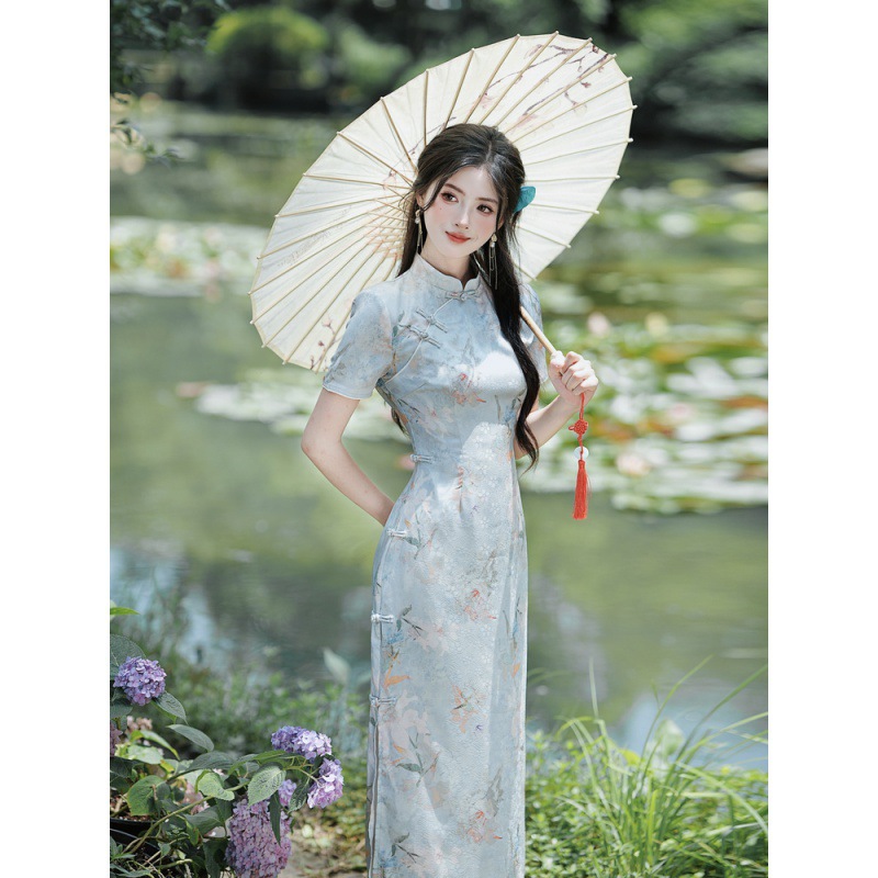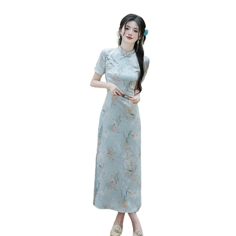| nameOriginal | 6915# real shot in stock new Chinese dark pattern jacquard short sleeve dress cheongsam |