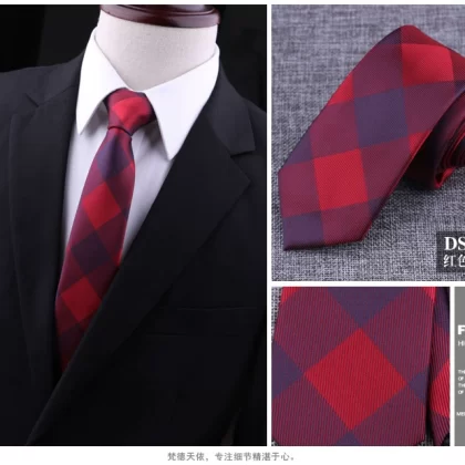 | nameOriginal | 6cm hand-tied narrow striped plaid burgundy tie |