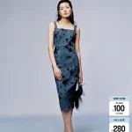 Vero Moda Outlet Dress 2024 Autumn and Winter New Flocked Print Slim Sling Slit Skirt Skirt