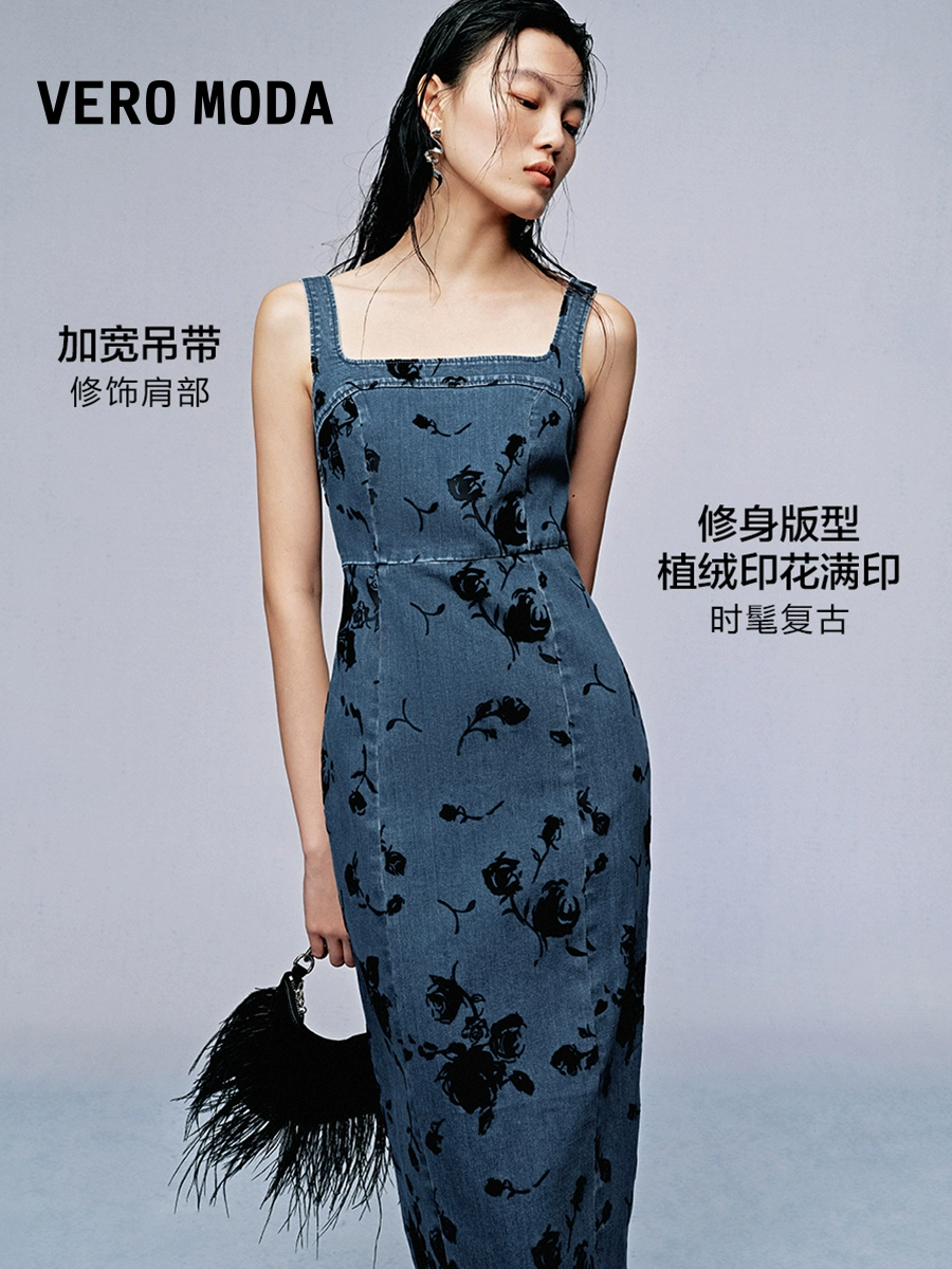 7.2 New Vero Moda dress 2024 summer new flocked printed slim suspender slit denim skirt