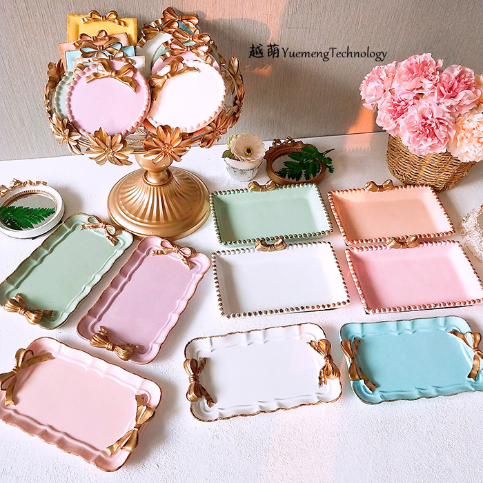 7N European Style Vintage Bow Cake Candy Plate Dessert Small Plate Ins Jewelry Storage Photo Tray Small Pendulum