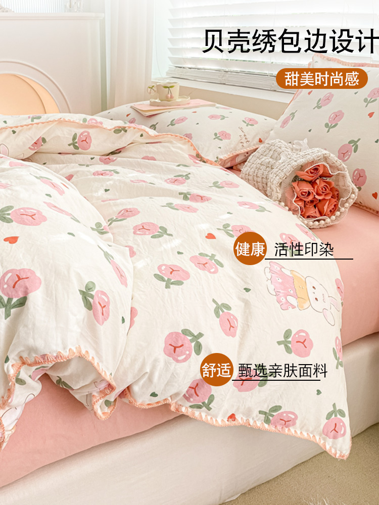 7Q56 double-layer yarn shell embroidery single quilt cover single piece quilt cover bed sheet non-pure cotton sanding dormitory bedding