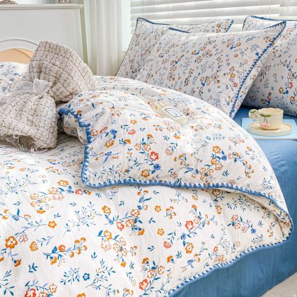 7Q56 طبقة مزدوجة غزل قذيفة التطريز غطاء لحاف واحد قطعة واحدة غطاء لحاف غطاء سرير غير القطن الخالص الرملي الفراش عنبر