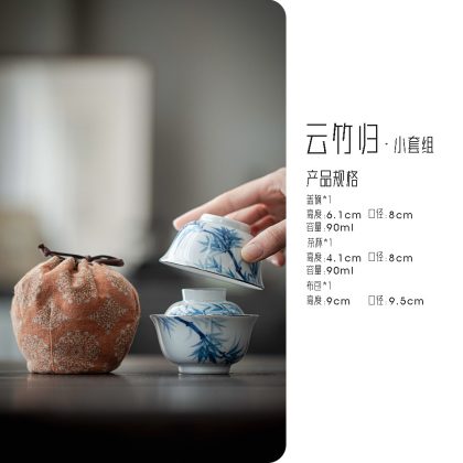 | nameOriginal | 86M0 hand painted blue and white bamboo travel tea set Suit Express Cup outdoor Cover bowl portable kung fu tea set one pot |