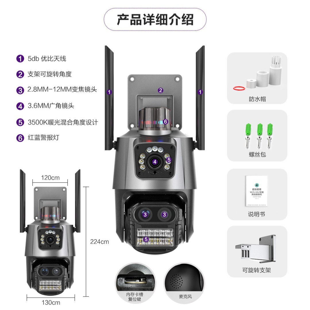 | nameOriginal | 9,000,003 mesh gun ball linkage 8 times zoom 4K wireless surveillance camera 360 degrees dual screen outdoor night vision |