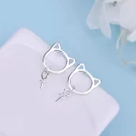 | nameOriginal | 925 silver hollow cat earrings, semi-finished earrings that can be glued with half-hole beads, DIY earring accessories |