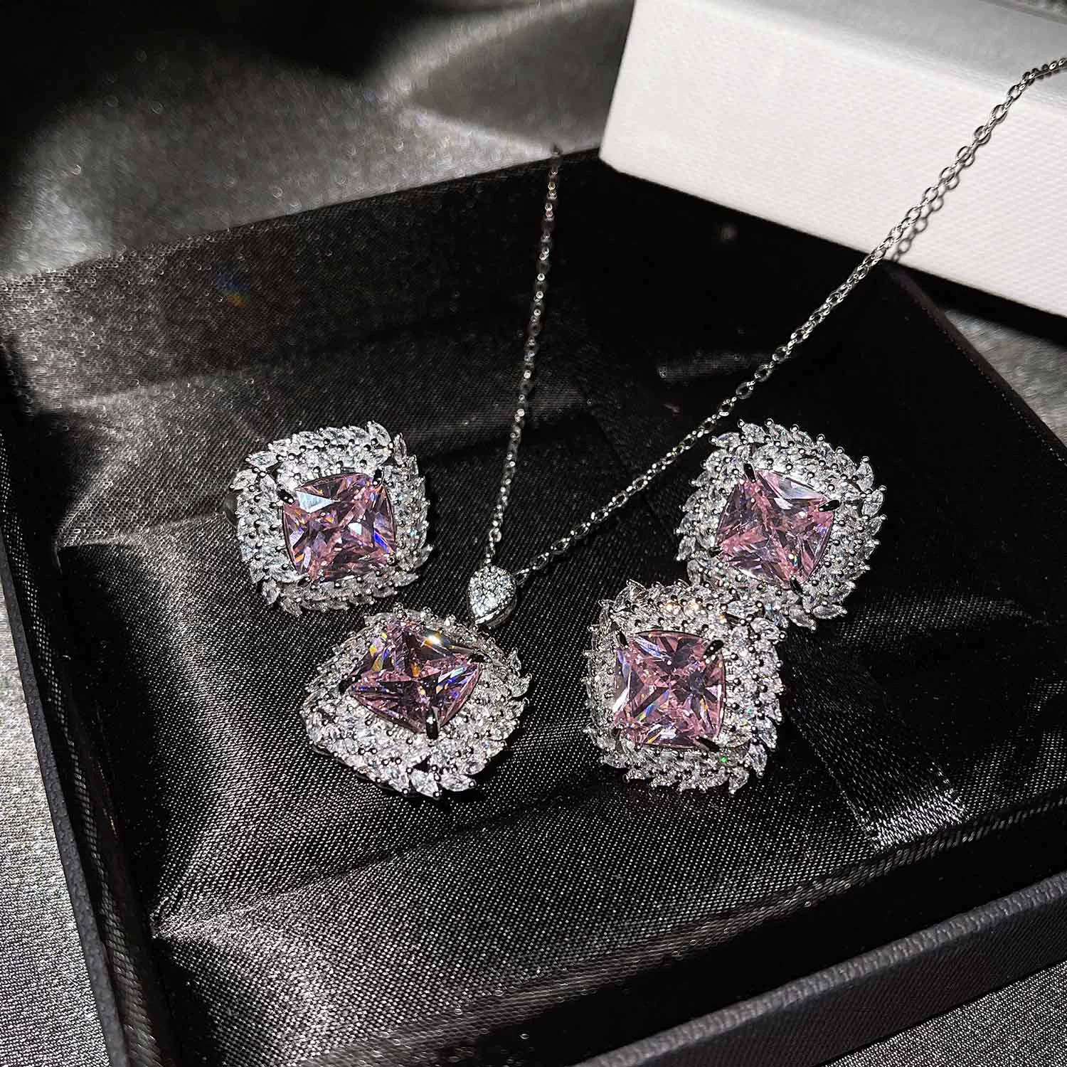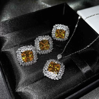 | nameOriginal | 925 silver luxury earrings sparkling colorful treasure set necklace yellow diamond ring topaz blue Argyle pink earrings for women |