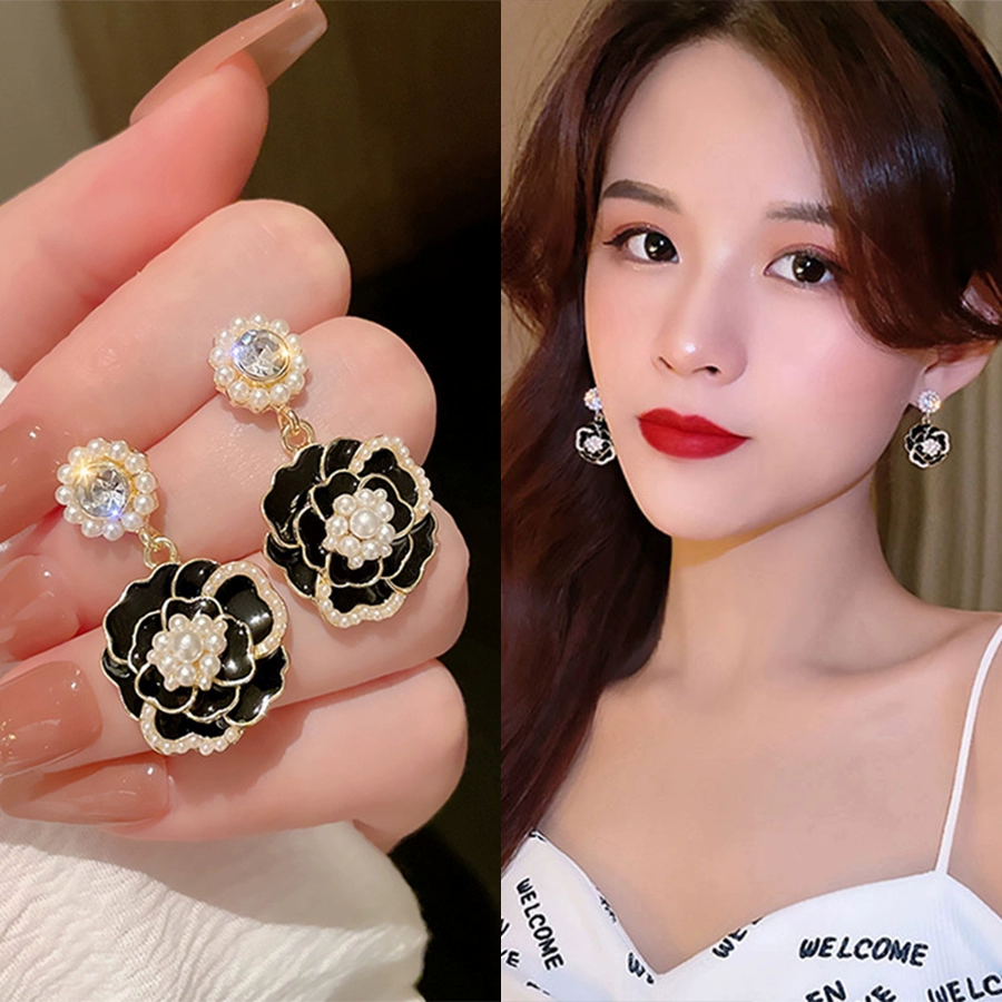 | nameOriginal | 925 silver needle retro French camellia earrings for women Korean ins style personality internet celebrity pearl earrings |