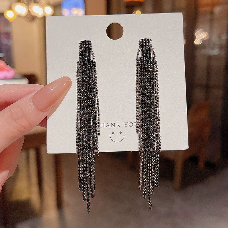 925 Silver Needle Super Fairy Diamond Long Tassel Earrings Ins Style Niche Design Versatile Personalized Ear Stud Ear Accessories for Women