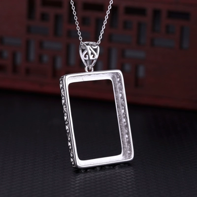 925 sterling silver pendant empty holder inlaid with square turquoise beeswax pendant holder sterling silver empty holder 20*28 male and female empty holder