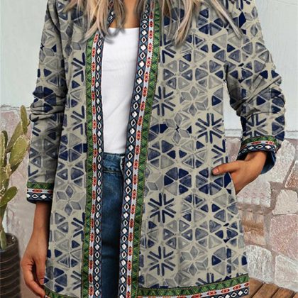 9305# Amazon wish Fall/Winter New Retro Ethnic Style Printing Long Sleeve Jacket Jacket Cardigan Women's Wear