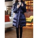 95 أوزة بيضاء أسفل الخصر أسفل سترة مقنعين طويلة 2023 السيدات الجديدة أوزة أسفل كلاين ملابس الخبز الأزرق
