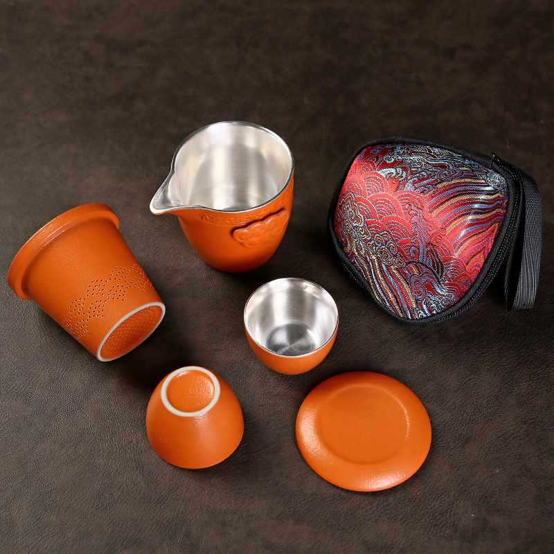 999 فضة اكسبرس كوب وعاء واحد كوبين السفر المحمولة طقم شاي الكونغ فو بطانة السيراميك كأس الفضة دعم التخصيص