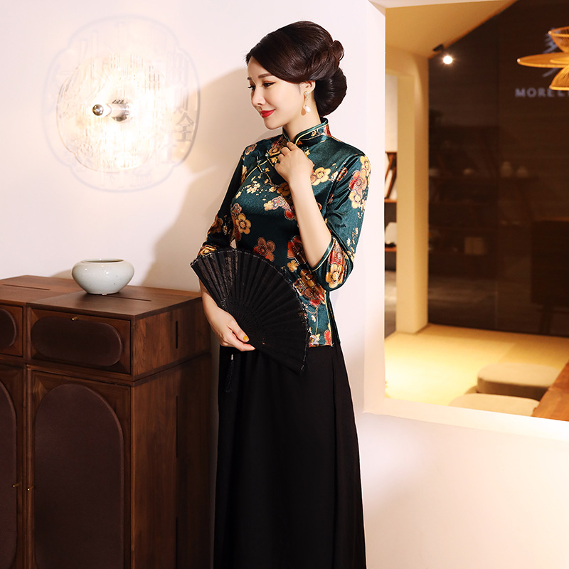 | nameOriginal | A generation of autumn and winter gold velvet jacket cheongsam daily performance mother fashion seven sleeve size slim |