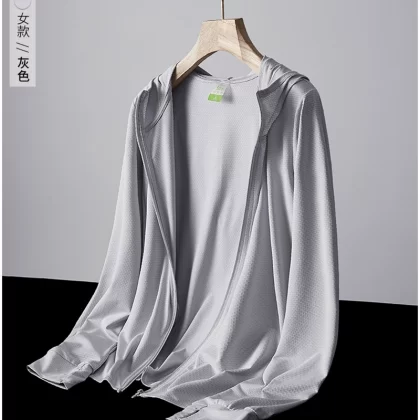 A library has the same YK zipper UPF50+ summer sun protection clothing for men, ice silk knitted long-sleeved couple skin clothing, women's trendy
