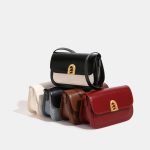A- line lock saddle bag small square bag 2023 new advanced contrast color shoulder messenger bag female niche commuter underarm bag