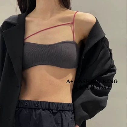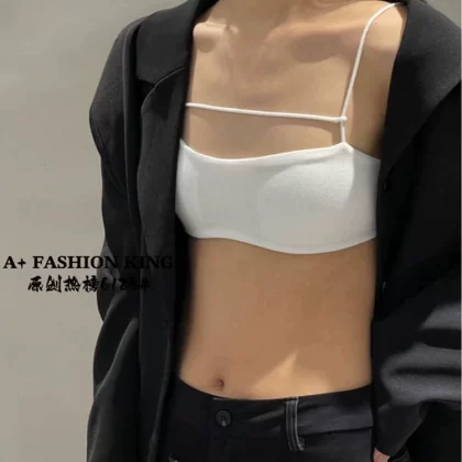 A+ New Style French Beautiful Back Sling Thin Bra Sexy Solid Color Cotton Small Breast Wireless Underwear Women's Tube Top