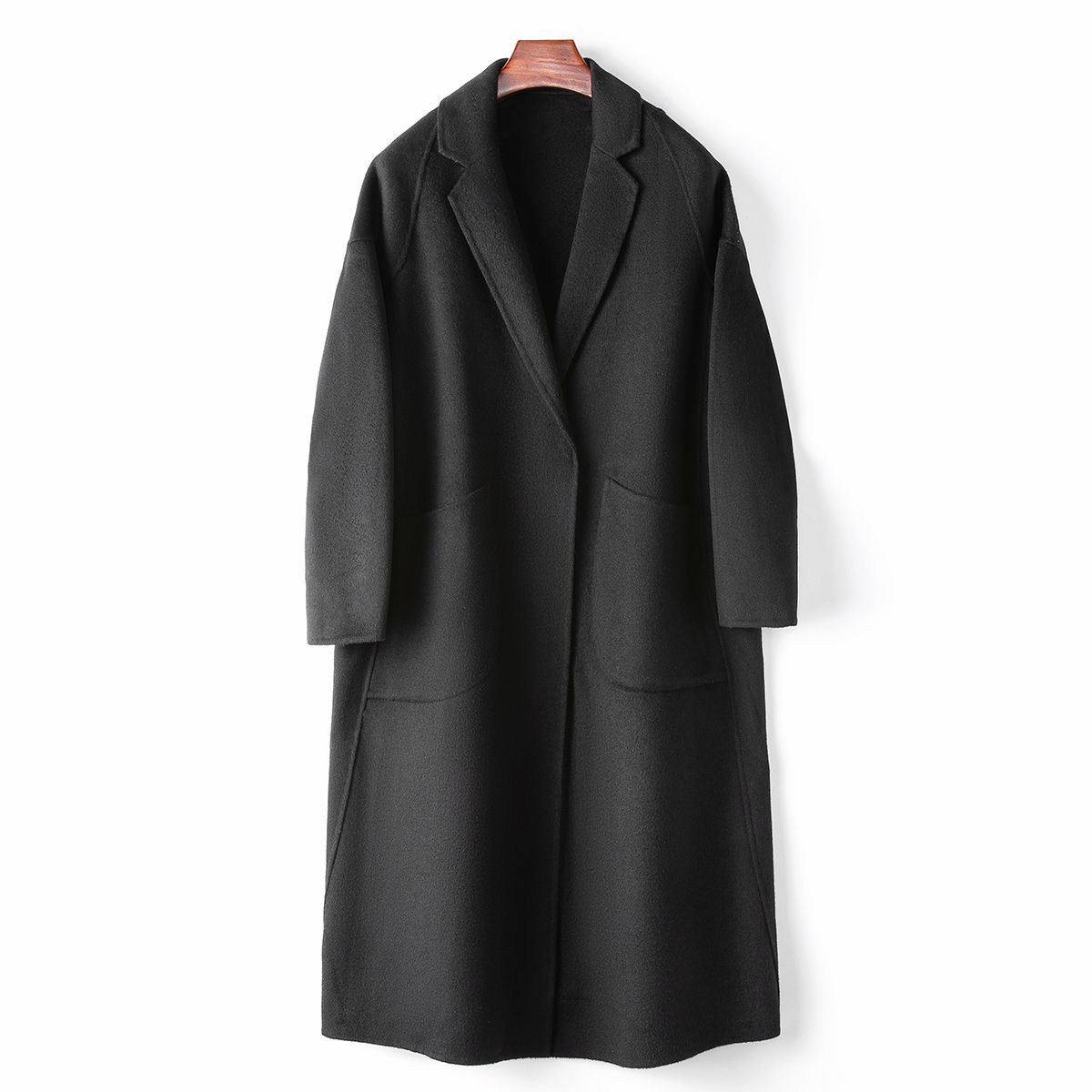 كمية صغيرة من الملابس 2024 ربيع جديد 100% معطف تويد صوف على الوجهين معطف نسائي غير رسمي طويل بياقة