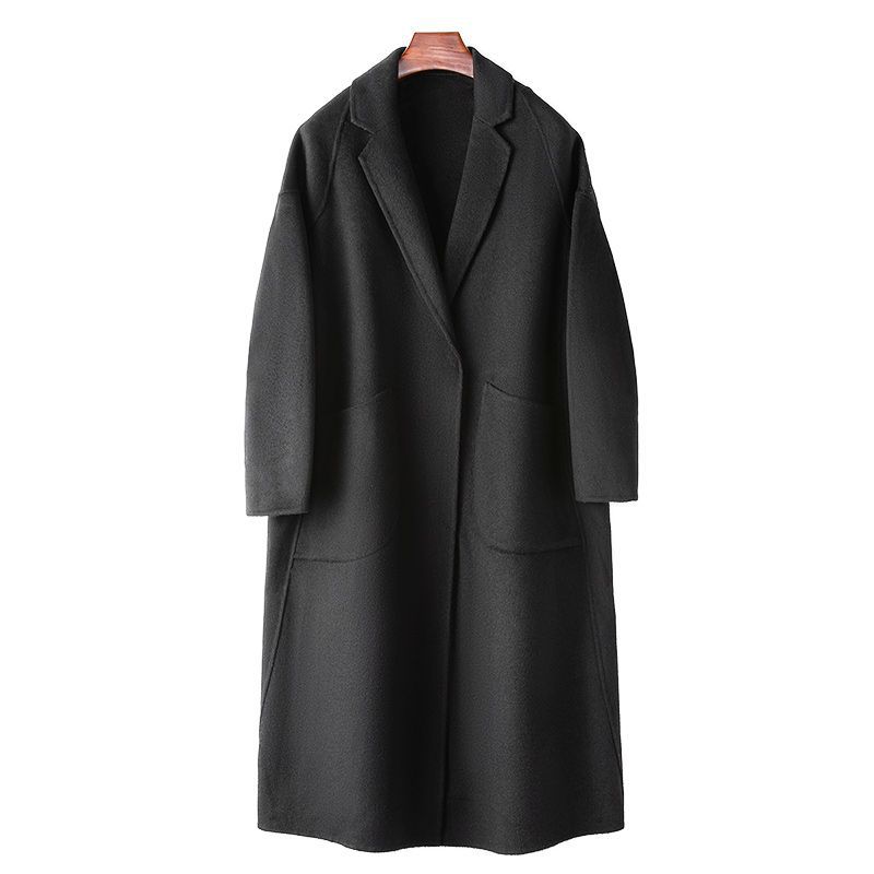 A small amount of clothing 2024 spring new 100% wool double-sided tweed coat women's casual long suit collar coat