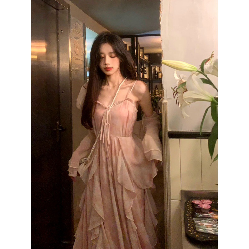 | nameOriginal | A sweet peach yikett "broken lady" summer new V-neck suspender dress fairy dress sweet |
