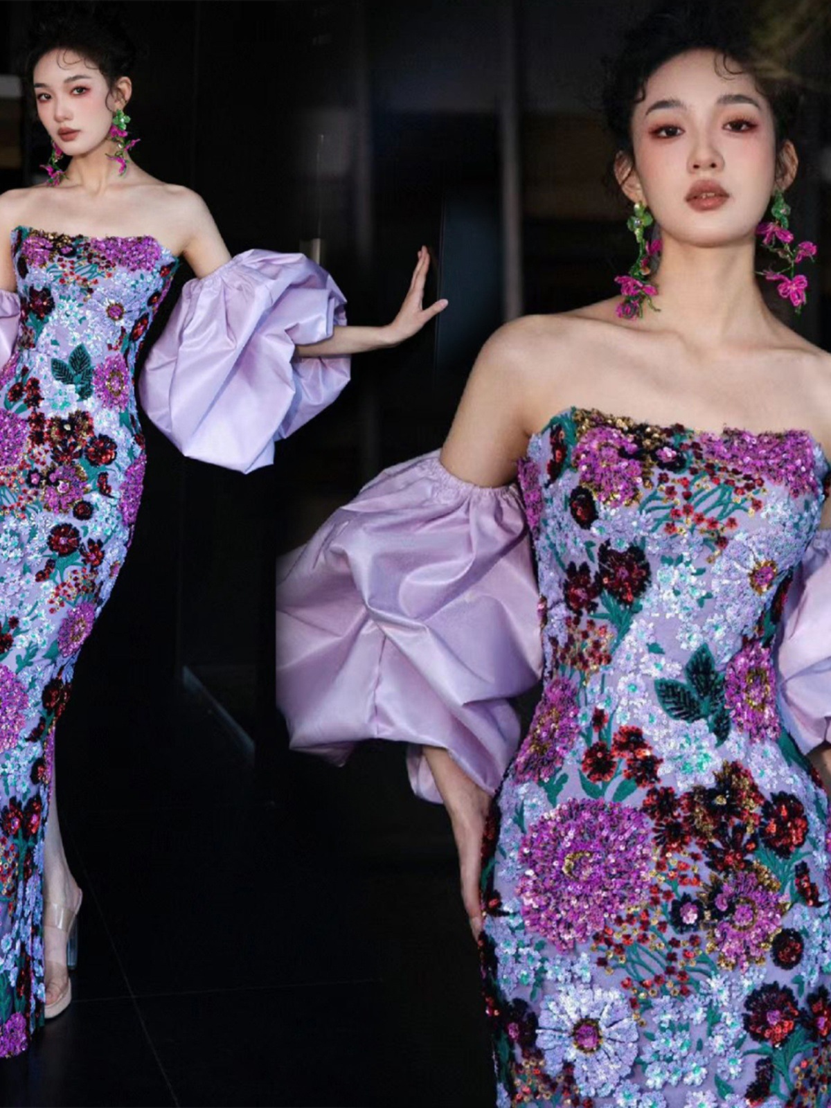 | nameOriginal | A two-wear purple flower bride wedding toast birthday party host wedding evening dress 19881 |