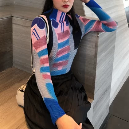 | nameOriginal | A481 digital half turtleneck long sleeve Miyake slim fit top |