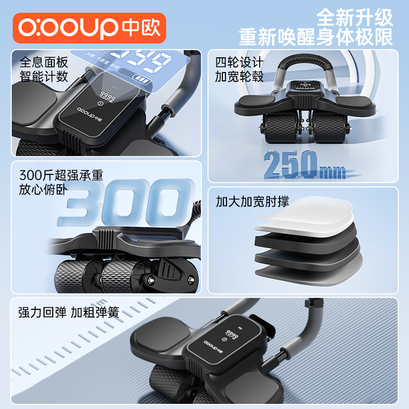 Abdominal wheel new four-wheel elbow support automatic rebound home thin belly roll abdominal muscle wheel fitness equipment weight loss exercise