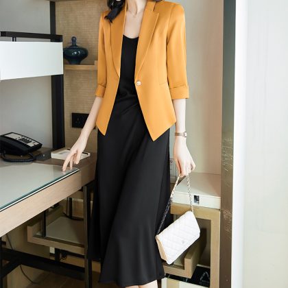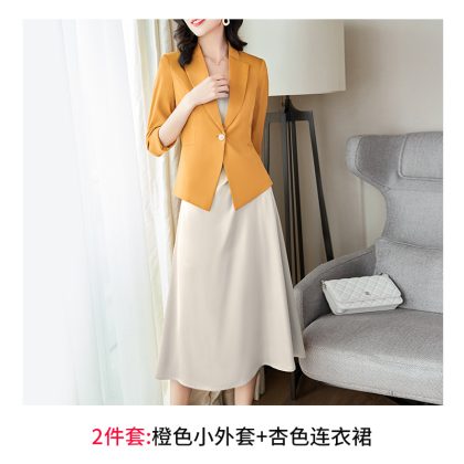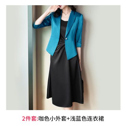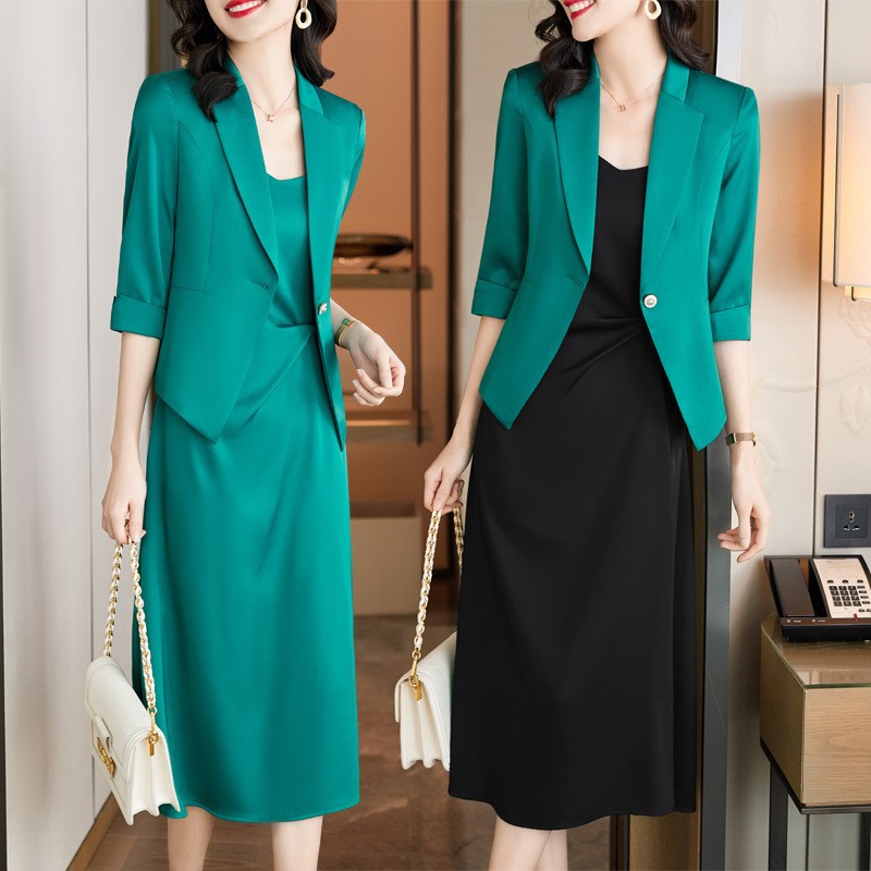 | nameOriginal | Acetic acid satin blazer women's summer thin fashion temperament goddess Fan suit skirt two-piece wholesale |