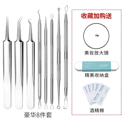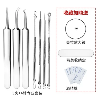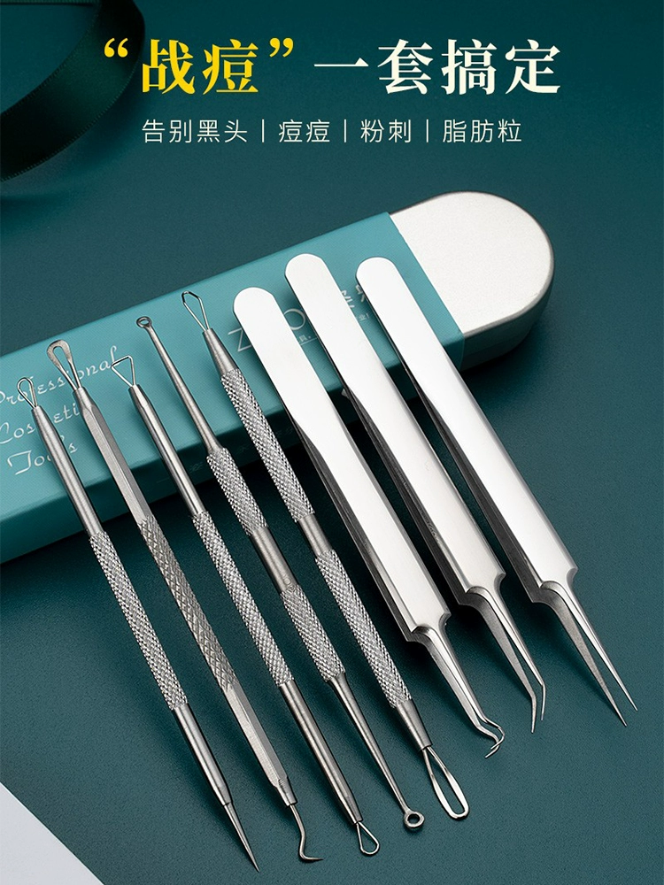 | nameOriginal | Acne needle set for picking and squeezing acne artifacts. Special sterilized tweezers for beauty salons to scrape off acne cells and blackheads. |
