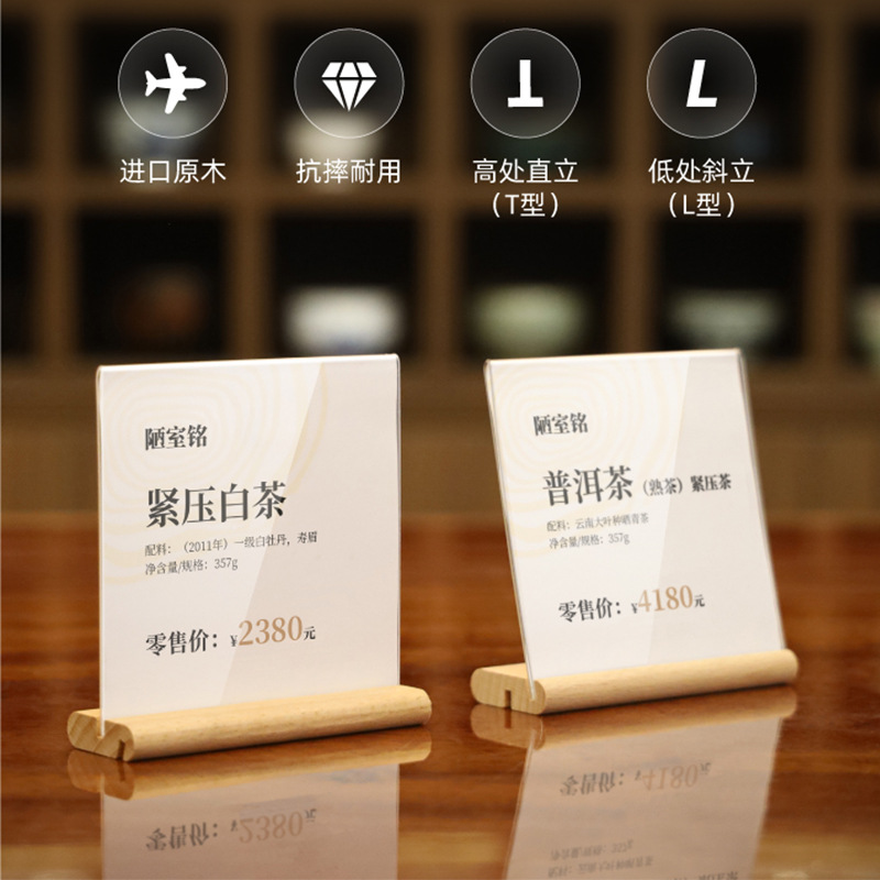 Acrylic commodity price brand Table sign display brand vertical T-type Table sign brand tea price sign advertising small brand