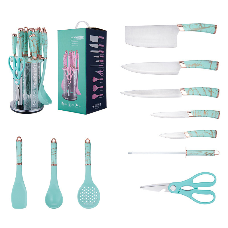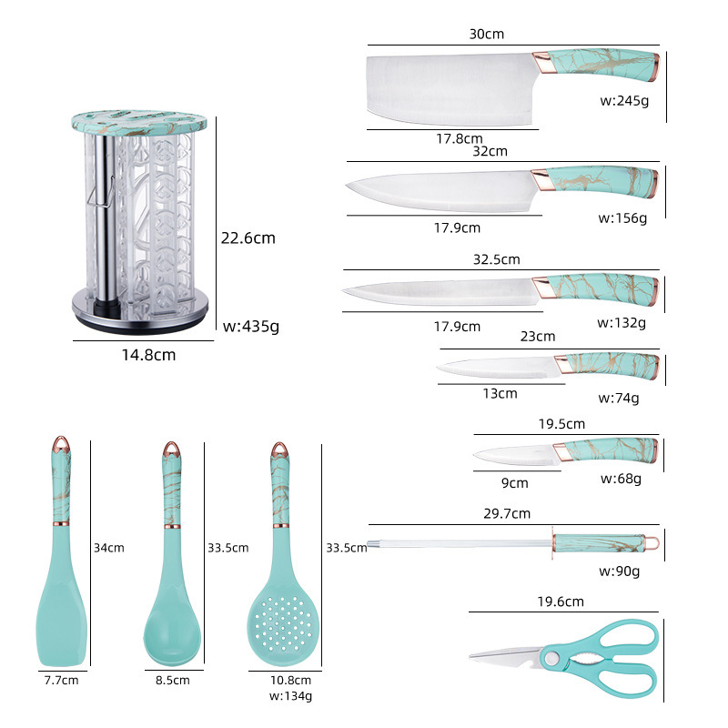 | nameOriginal | Acrylic knife holder stainless steel knife suit household chef kitchen knife non-stick frying shovel kitchen tools 11-piece set |
