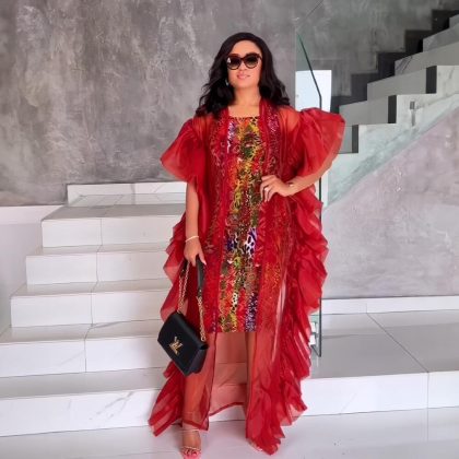 | nameOriginal | African ethnic style fashion design women's clothing dress ruffled Mesh Digital printing elastic inner skirt suit |