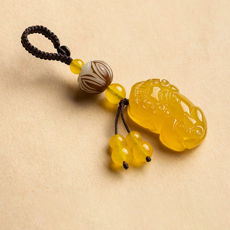 | nameOriginal | Agate jade yellow tiger eye Pixiu keychain car pendant for men and women couple personalized pendant to make money jewelry chain rope |