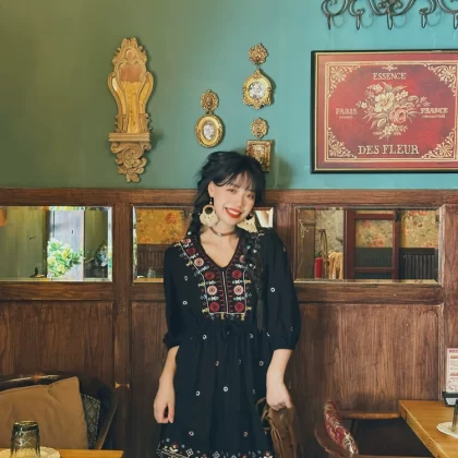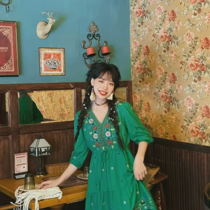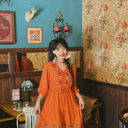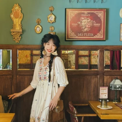 | nameOriginal | Age-reducing ethnic style cotton and linen dress travel embroidery |