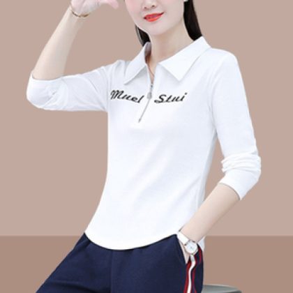 | nameOriginal | Age-reducing Korean T-shirt Women's T-shirt 2024 Slimming Top Polo Shirt Long Sleeve Spring and Autumn Western Style Base Shirt |