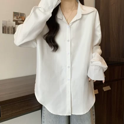 | nameOriginal | Age-reducing plus size long-sleeved beautiful fat mm loose white shirt |