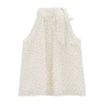 Age-reducing polka-dot sleeveless loose casual lace-up halter neck