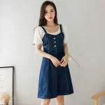 | nameOriginal | Age-reducing preppy mid-length A-line denim suspender skirt |