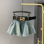 Age-reducing retro denim spring and summer anti-exposure pleated skirt