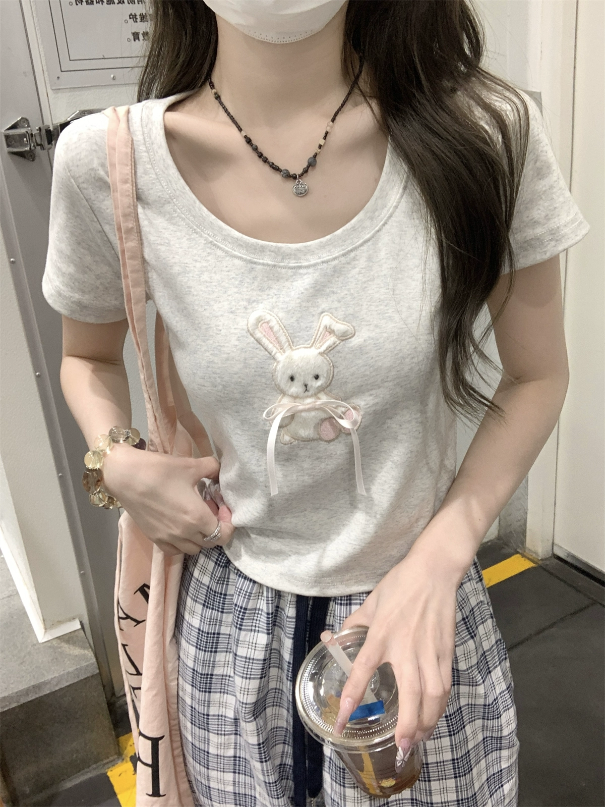 | nameOriginal | Age-reducing slim fit round neck three-dimensional right shoulder short sleeves embroidered |