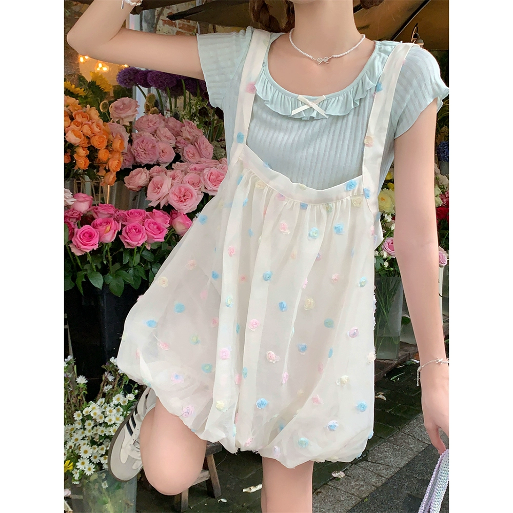 | nameOriginal | Age-reducing summer college style slimming dress with suspenders |